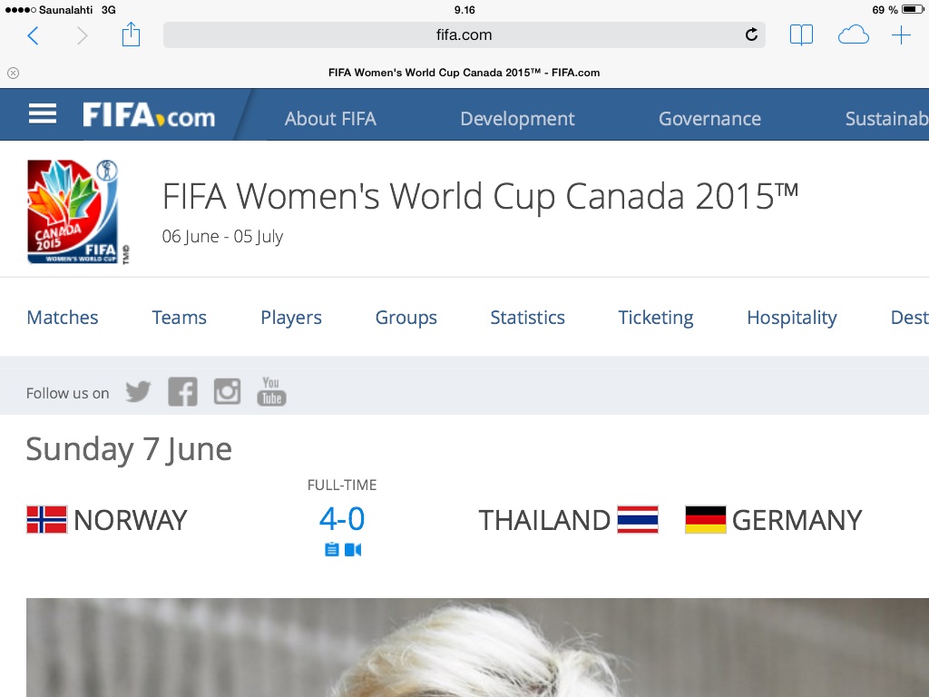 June 8, 2015 7:39 am Comments OffFifa rypee skandaalien keskellä, mutta onneksi pallo pyörii pelikentillä. Champions Liigan huippufinaalin jälkeen katseet kääntyvät Naisten MM-kisoihin, jotka pidetään tänä kesänä Kanadassa. Ne jotka älähtävät, kun kuulevat sanat jalkapallo ja naiset, heidän on nyt hyvä mahdollisuus päivittää käsityksiäänsä huippunaisjalkapallosta. Peli on vauhdikasta ja taitavaa ja YLE näyttää kisoista 22 peliä ja vaikka Suomi ei kisoihin päässytkään, kannattaa katsoa! Totta kai suorittamisessa on fysiikasta johtuvia eroja, mutta on myös se suuri ero, ettei naisten peleissä nähdä näyttelemistä eikä vastustajaa kunnioittamatonta aggressiivisuutta. Jos siis joku haluaa nähdä ”kissatappeluita”, joutuu tyytymään jatkossakin vain Suareziin ja Chielliniin väliseen jatkuvaan sääntöjen vastaiseen pelaamiseen ja puremisiin, muut voivat kääntää katseet Champions Liigan finaalin jälkeen Kanadaan.