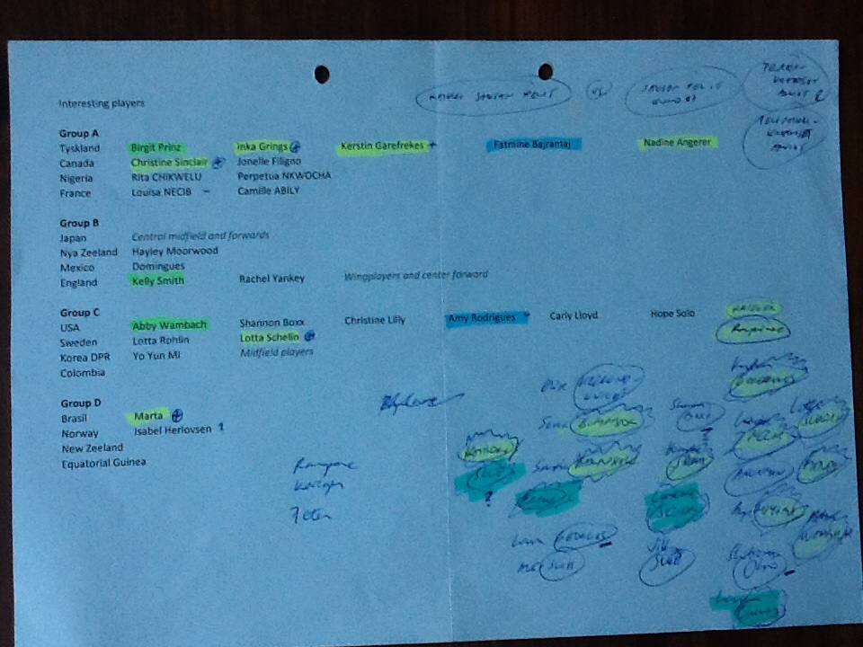 MyCoazh on taas tässäkin turnauksessa vahvasti mukana. Neljä vuotta sitten tehtiin tilastoja Suomen maajoukkuevalmentajille, kun Jeglertzin johdolla haluttiin selvittää maailman ehdottomien omien pelipaikkojensa huippujen peliesityksiä purettuna osasuorituksiin. Silloin Andreen lista omien pelipaikkojensa mielenkiintoisista pelaajista etukäteen näytti tällaiselta: Birgit Prinz, Inka Grings, Kerstin Garefrekes, Fatmine Bajramaj, Nadine Angerer, Christine Sinclair, Jonelle Filigno, Rita Chikwelu, Perpetua Nkwocha, Louisa Necib, Camille Abily, Homare Sawa, Miyama, Harley Moorwood, Dominigues, Kelly Smith, Rachel Yankey, Abby Wambach, Shannon Boxx, Christine Lilly, Amy Rodrigues, Carly Lloyd, Hope Solo, Lotta Rohlin, Lotta Schelin, Yo Yun Mi, Marta ja Isabel Herlovsen. Huikeita pelinaisia ja suurelta osin edelleen tuttuja nimiä alkavista MM-kisoista. MyCoazhin AllStars-kandidaatit puolestaan tilastollisten pelianalyysien jälkeen noista kisoista piti sisällään seuraavat pelaajat: Marta ja Wanbach kärkeen ja heitä haastamaan Sinclair, Grings ja Schelin. Laitalinkeiksi Miyama, Rapinoe ja Garefrekes, joita puolestaan haastoi Thomis. Ylemmälle keskikentälle Sawa ja Kulig, joita haastoi Necib ja Cheney. Laitapakeiksi Bombastor, joka oli malliesimerkki nousevasta laitapakista, ja Krieger ja haastajiksi Peter, Kinga ja Schmitt. Toppareiksi Bartusiak ja Erika, joita haastoi Rohlin, Kumagai ja Iwashimizu sekä maaliin Kaihori, jota haastoi Solo.