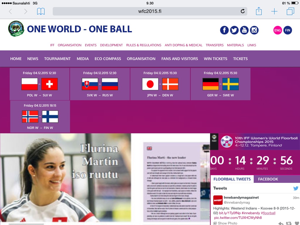 Games are best on the spot but so are fans, too! There will be “the official fan of team Finland”, mr. Tero Töyrylä with his “Turha koittaa – Suomi voittaa!” chant, drums and horn and huge head pictures of the Finnish players. We will hear “Hop – Suisse, Hop Suisse!” and “Sverige-Sverige!” supports, too. Let´s hope that there will be fans and visitors from all over the world and all kinds of chants to be heard and learned. Organizers are aiming at breaking the earlier spectator records both on the spot and via television & youtube.